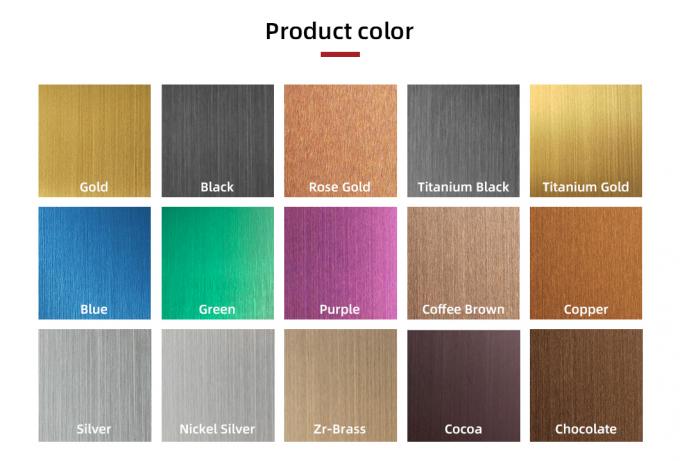 다음을 포함하여 항지문 스테인레스 강판은 다양한 설계에 대한 필요를 충족시키기 위해 다양한 색상 옵션을 제공합니다 :