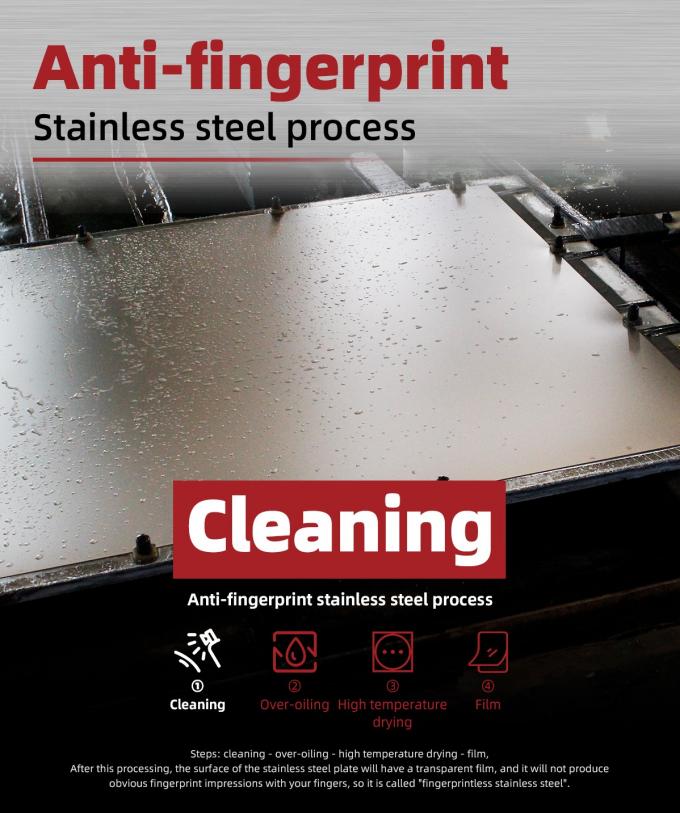 항지문 기술 : 항지문 스테인레스 강판은 지문과 물얼룩에 저항력이 있는 평활 표면을 보증하기 위해 진보적 표면 처리 기술을 이용합니다. 그들이 깨끗하고 정제된 채로 남아 있는 것처럼, 이것은 그들을 주방과 욕실과 같은 높은 통신량 지역에 이상적이게 합니다.